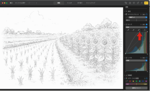 これを、画像編集ソフトを利用して、白黒下絵を作成。私の環境ですので、解説画像のパソコンはMacですが、Windowsでも同様です。